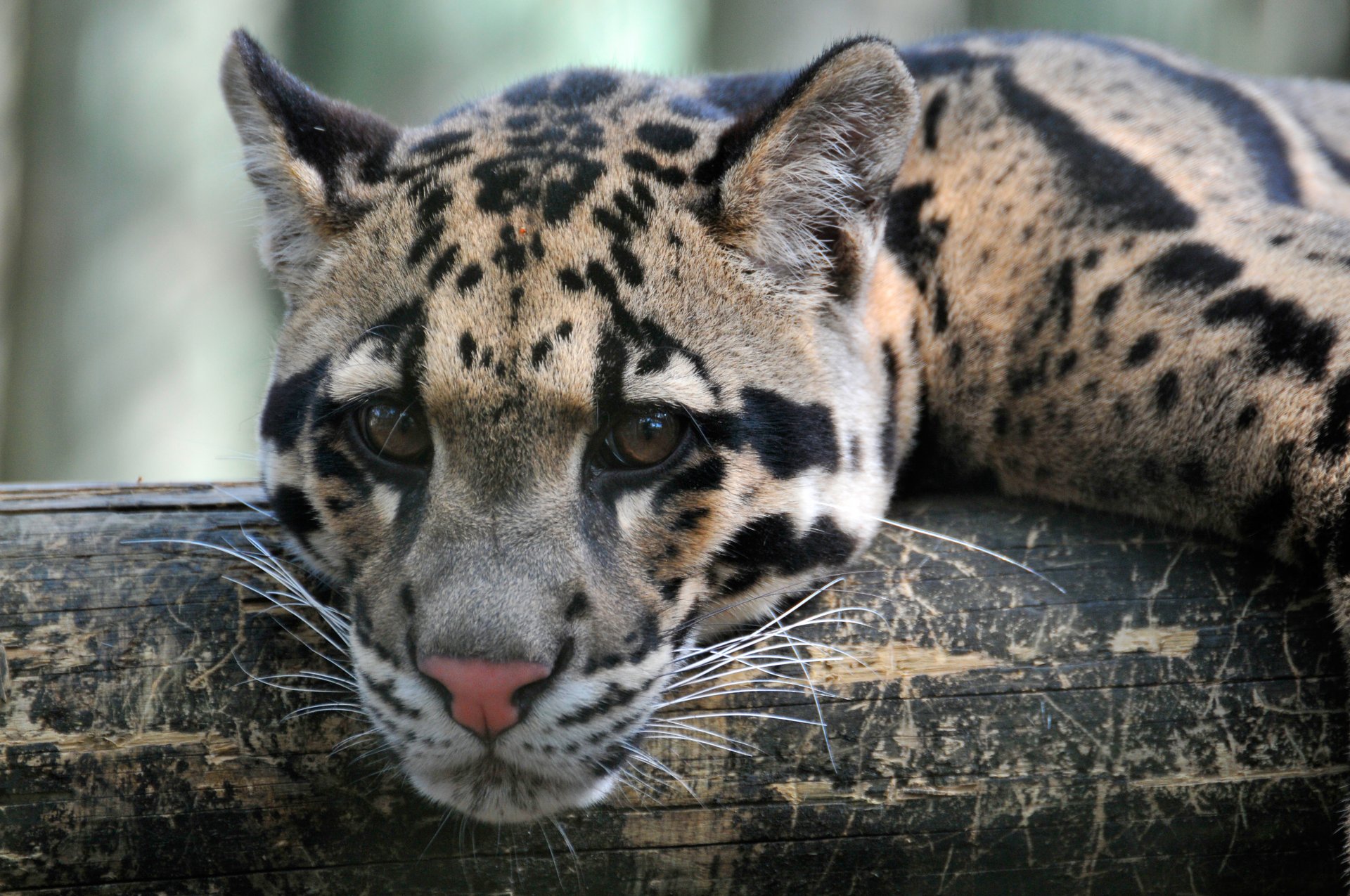 Czarno-biały lampart z puszystymi wąsami w profilu
