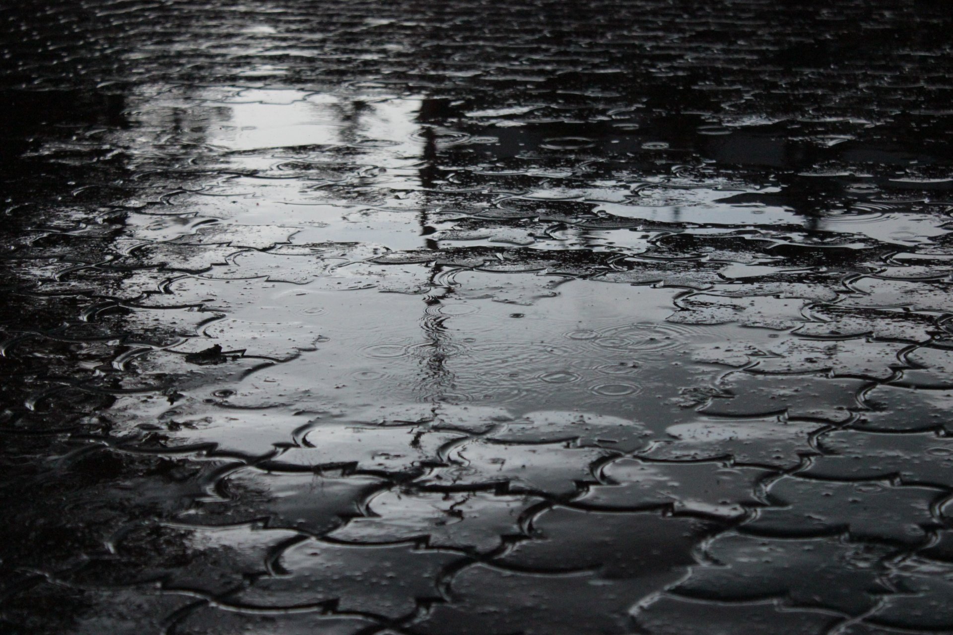 Misha patrzy przez okno na deszcz padający na nocne miasto