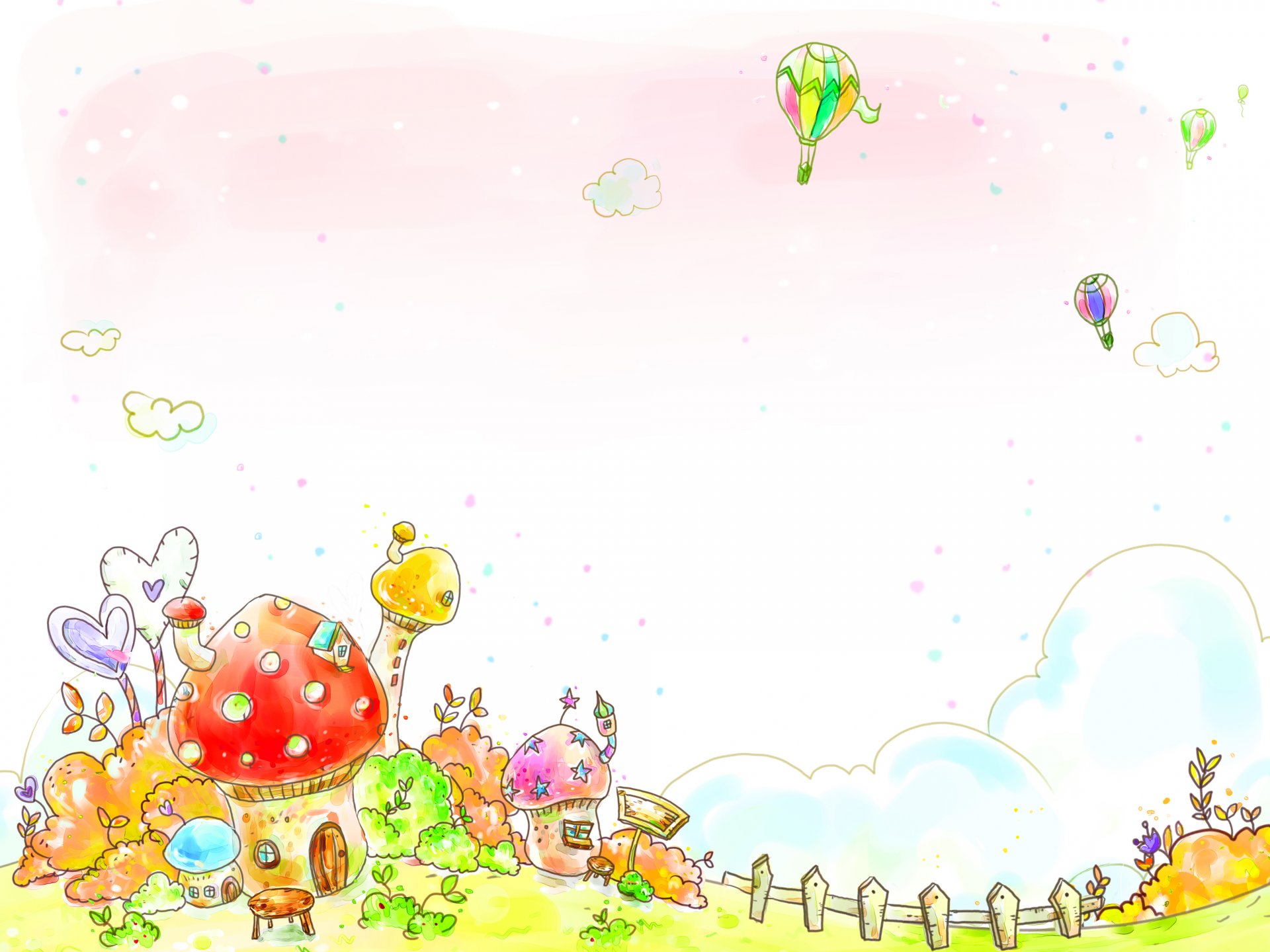 Piękny rysunek grzybów i tęczy dla dzieci