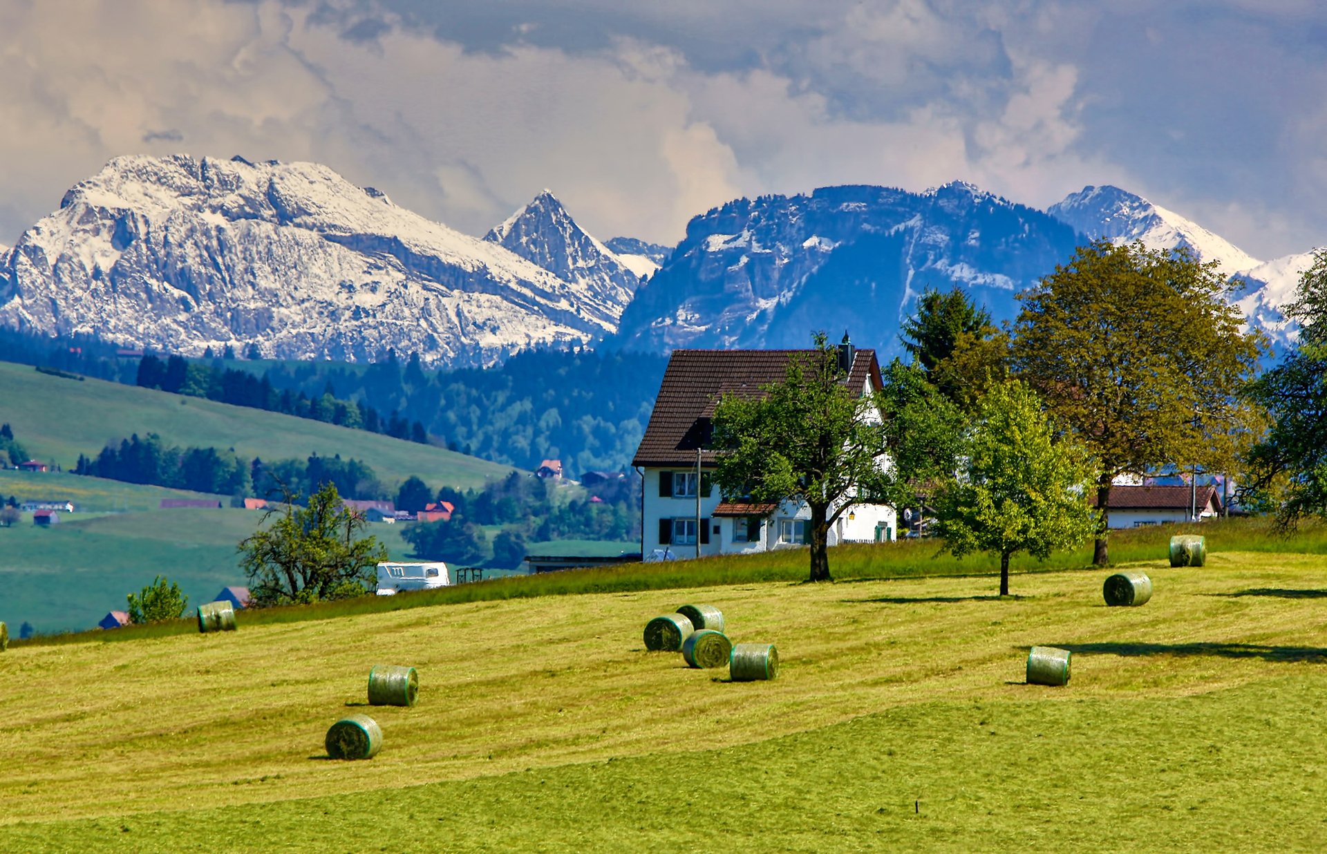 Domek w polu za górami