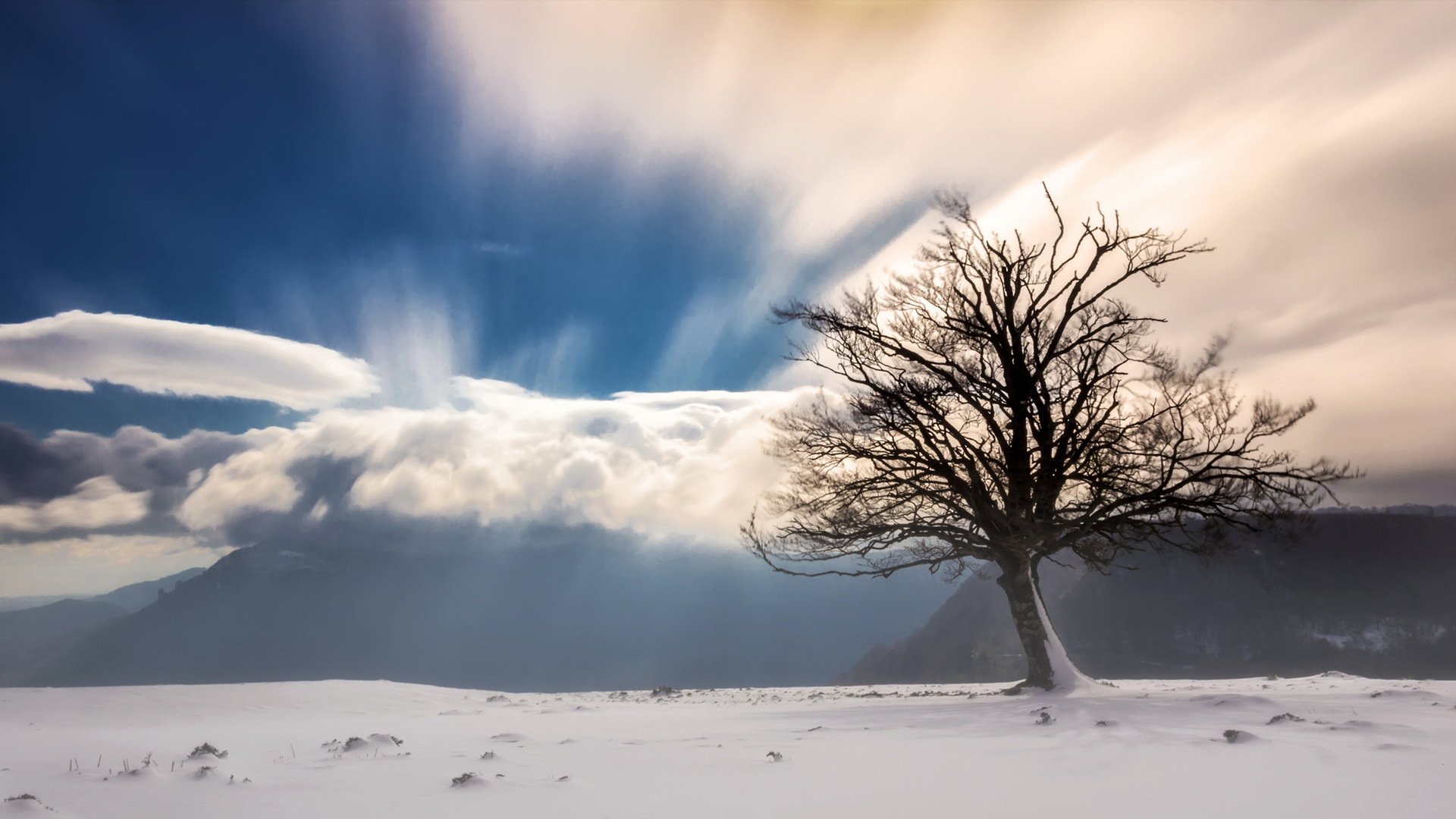 Płonące drzewo na śniegu