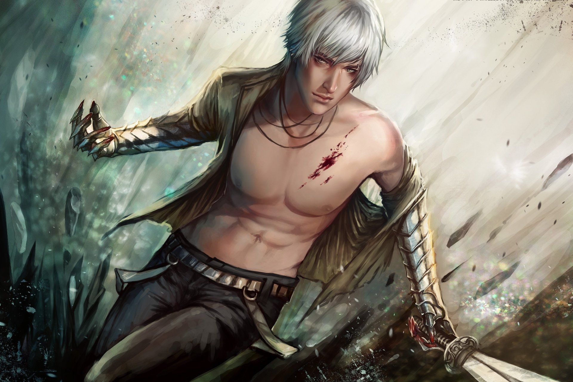 Facet z rozłożonymi rękami patrzy na zachód słońca