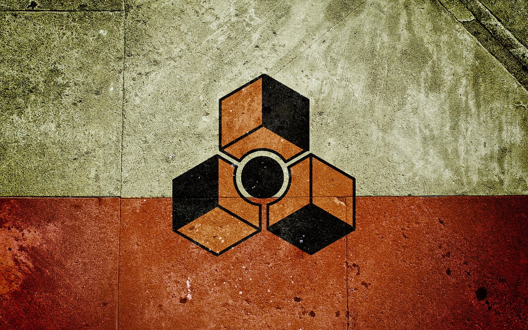 Trójwymiarowy obraz kwadratowych kształtów na ścianie z płytek