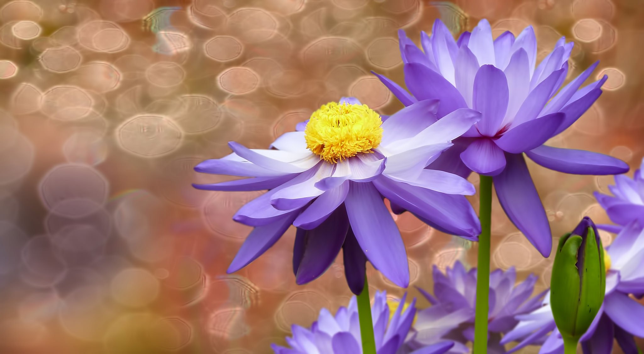 Fioletowe kwiaty Ashikaga na tle nieba o świcie