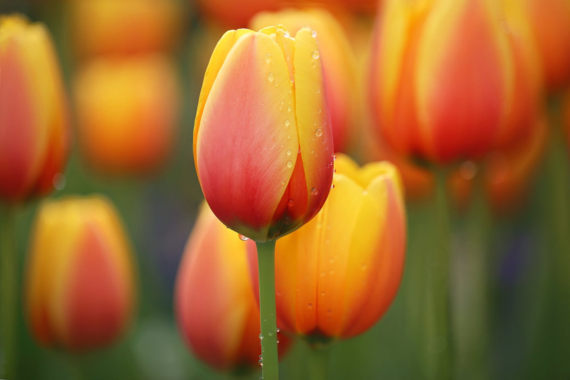 Pomarańczowe tulipany. Kwietniki kwiatów