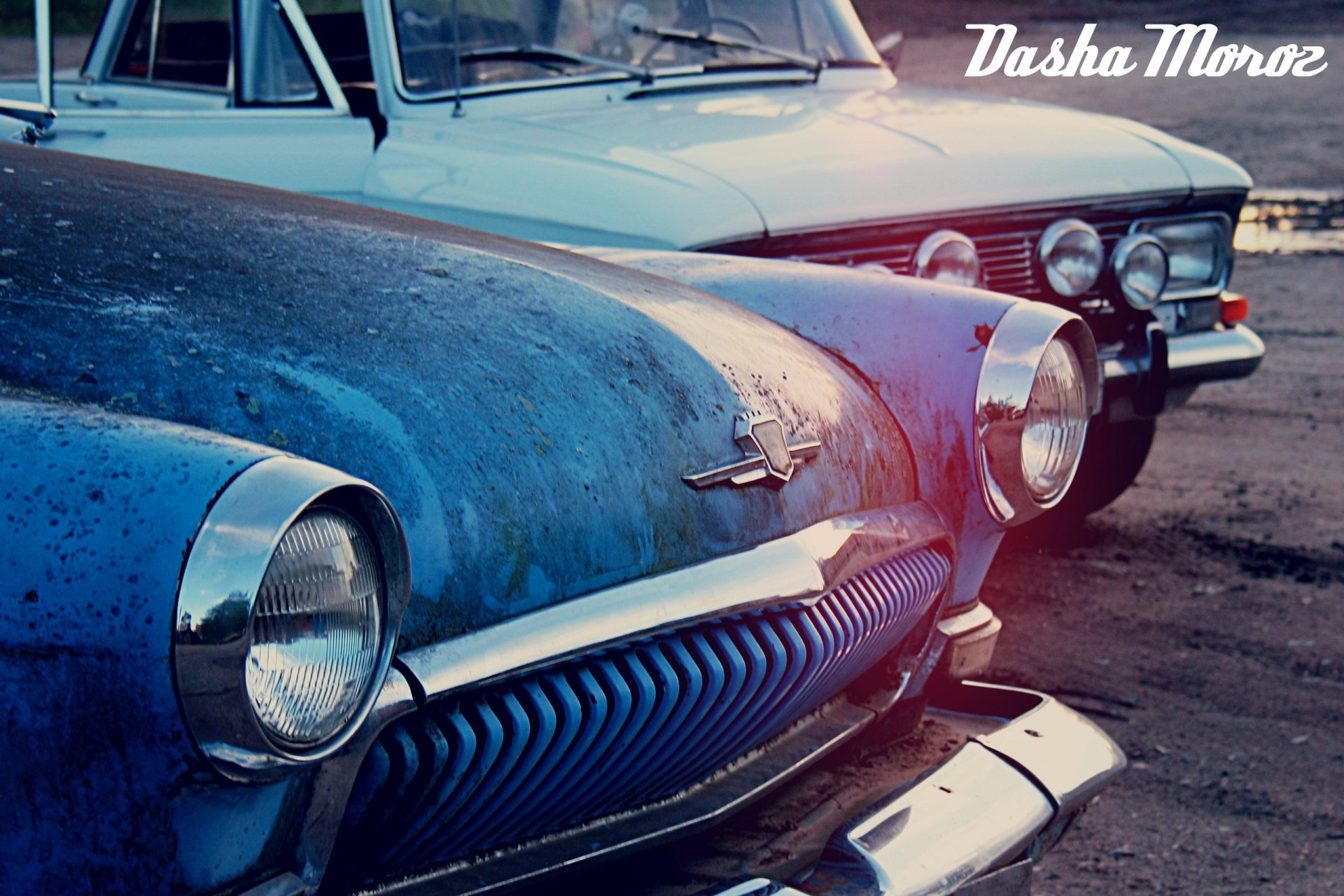 Retro Wołga na tle Moskwy