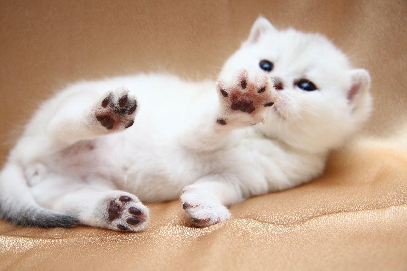 Biały kotek z niebieskimi oczami gra