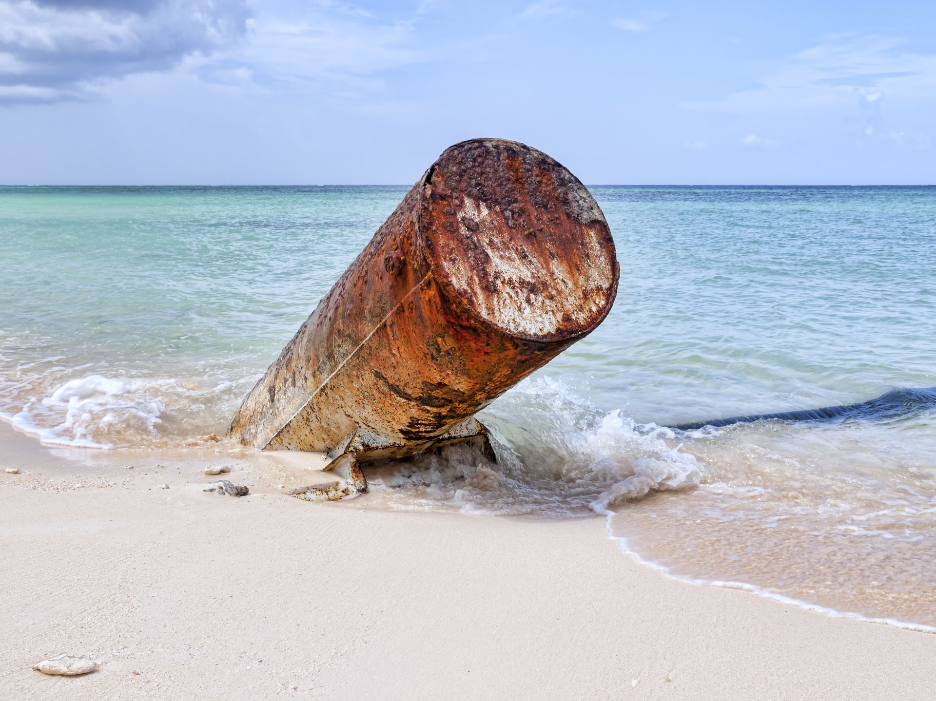 Metalowy robot z niebieskim podświetleniem na szarym tle