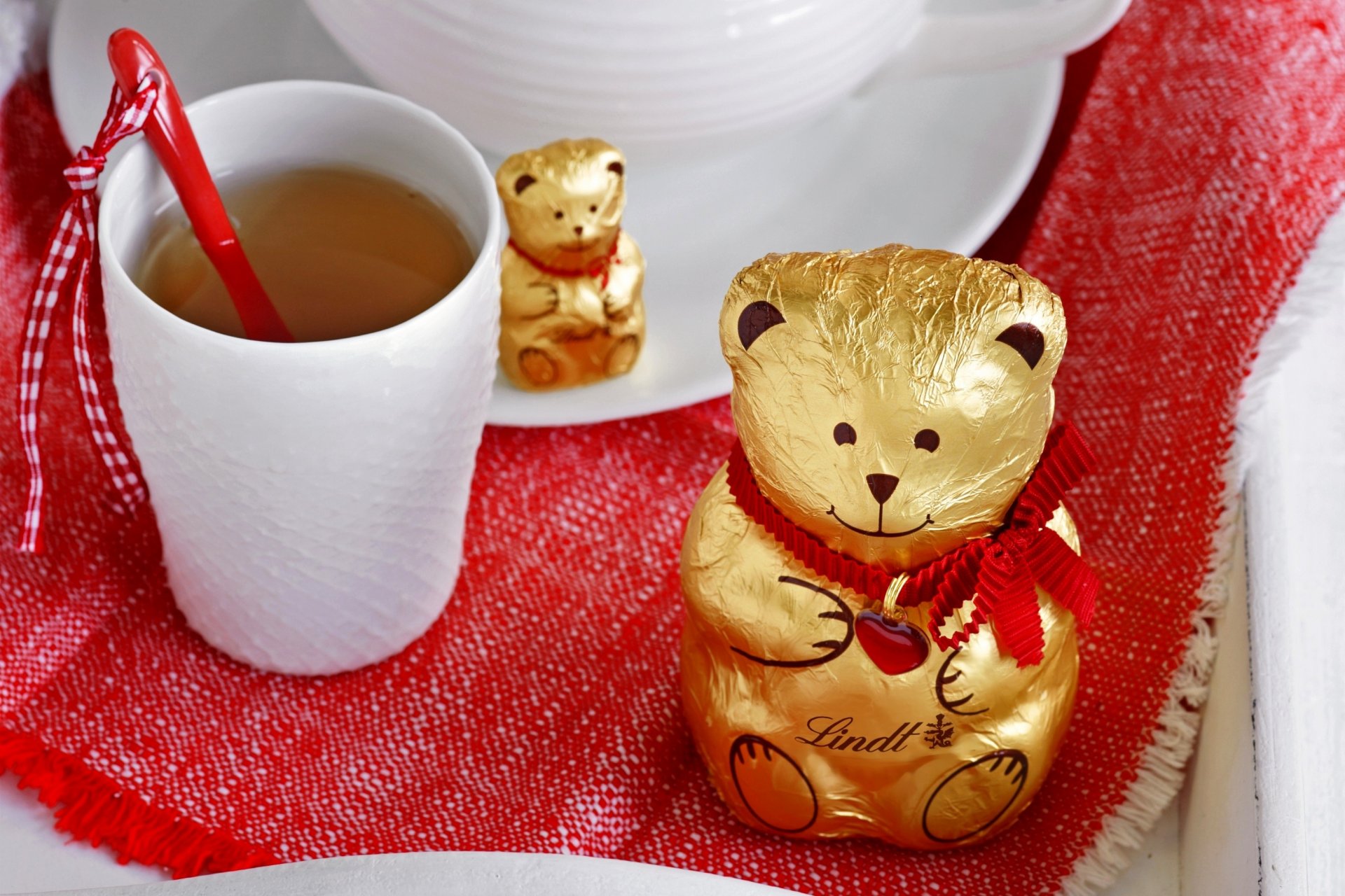 Czekoladowe misie z kubkiem herbaty w przytulnej atmosferze