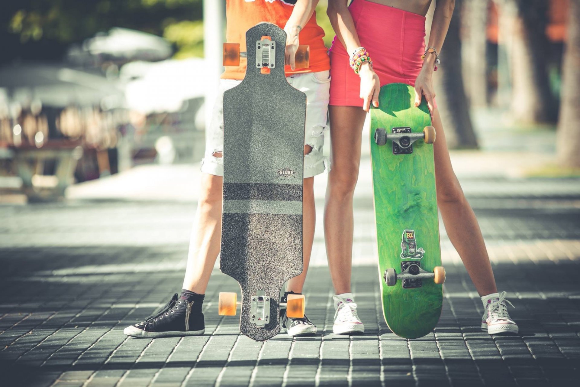 Chłopak i dziewczyna stoją z łyżwami