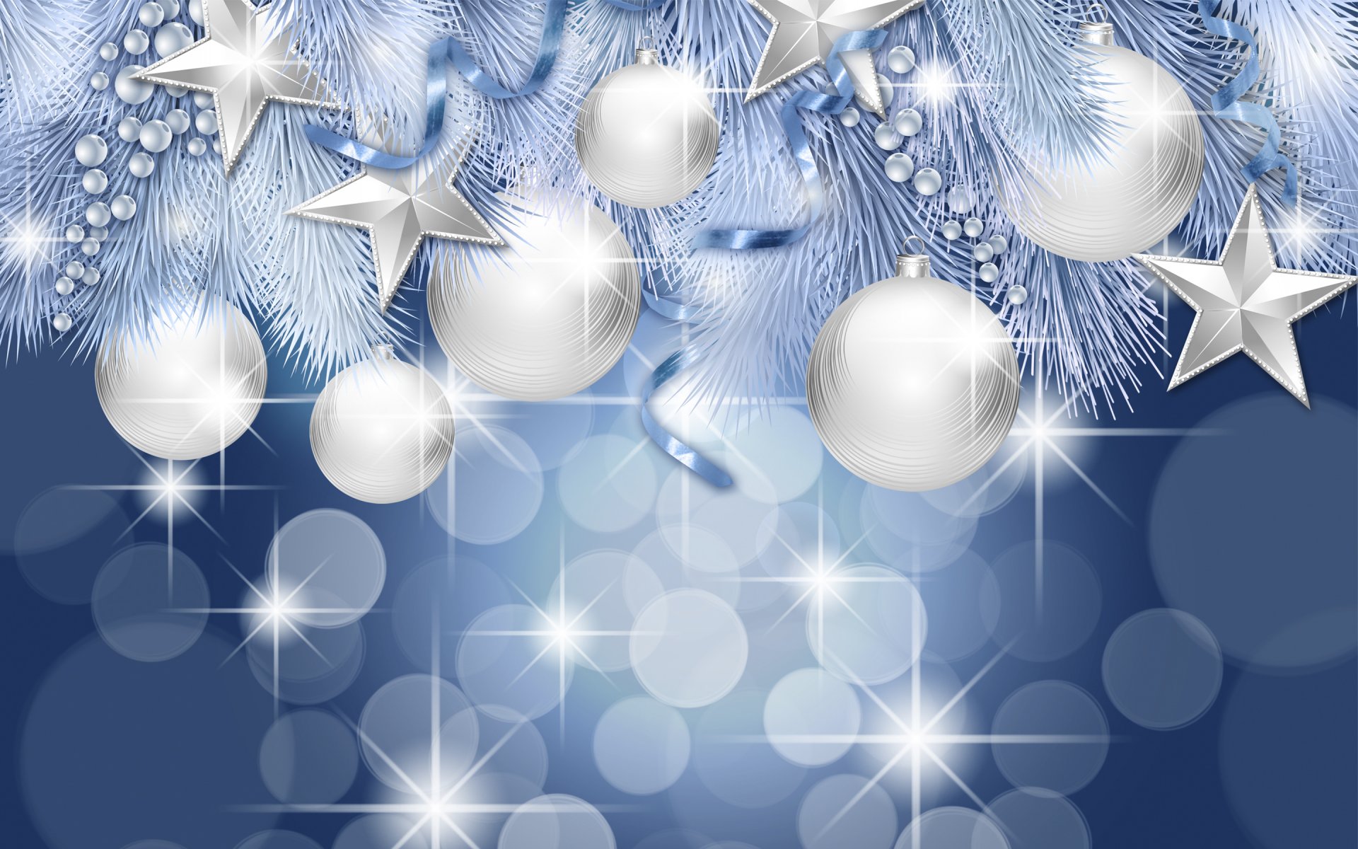 Gałęzie iglaste z kulkami i gwiazdami
