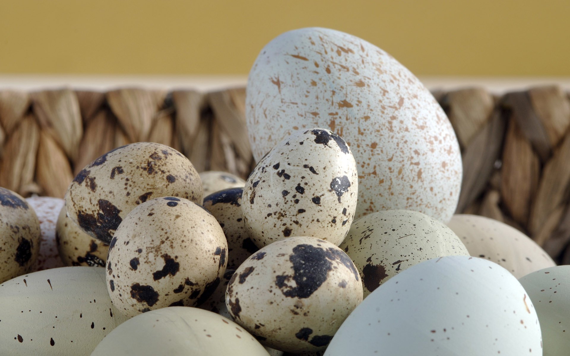 Kartka Wielkanocna. Kosz z tulipanami i jajami przepiórczymi