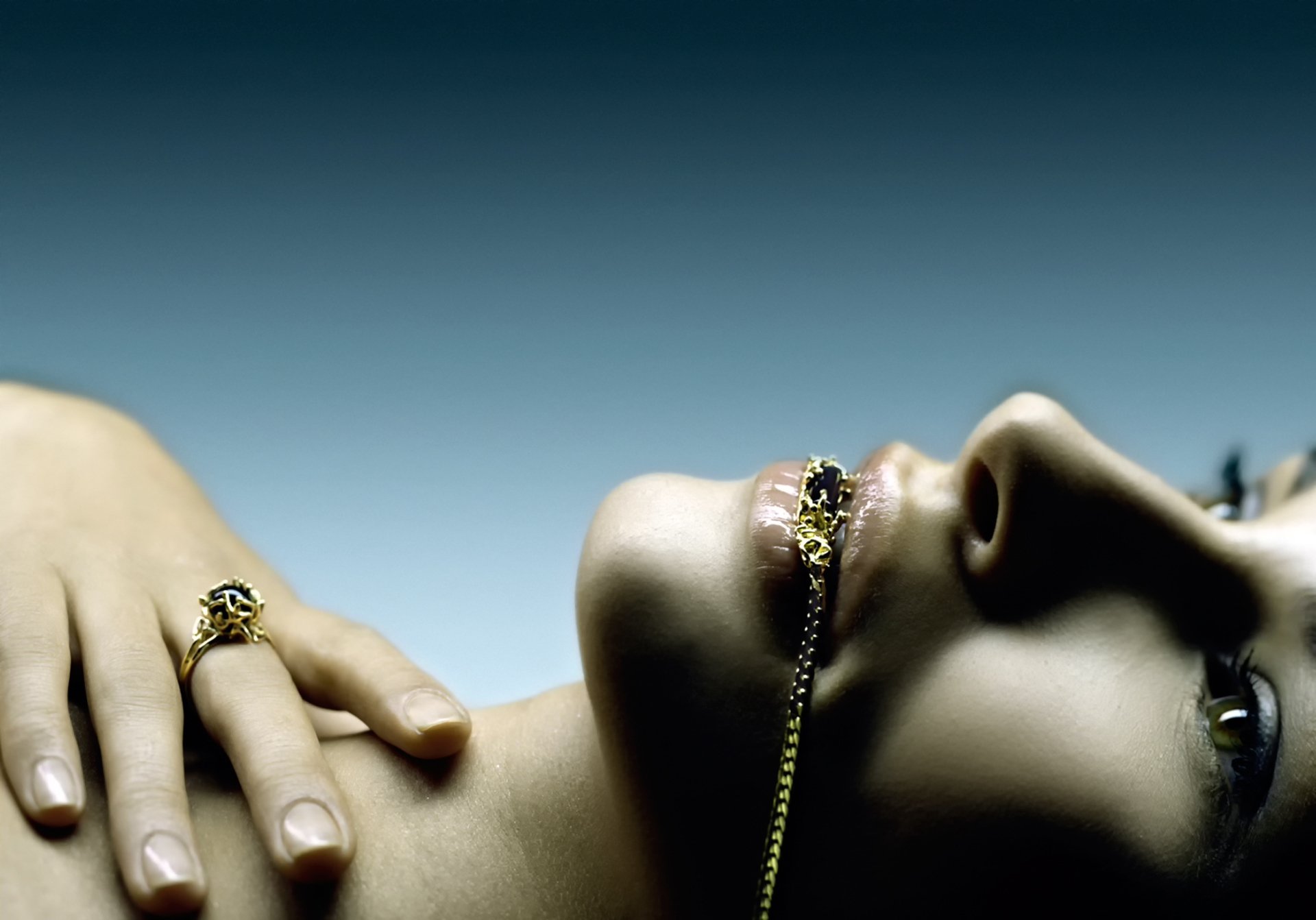 Dziewczyna z biżuterią na niebieskim tle