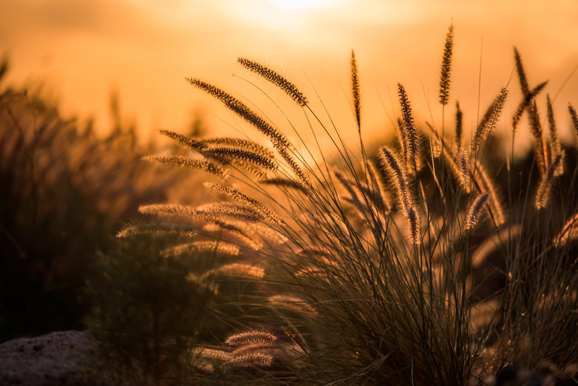 Kłoski z roślin sfotografowane o świcie