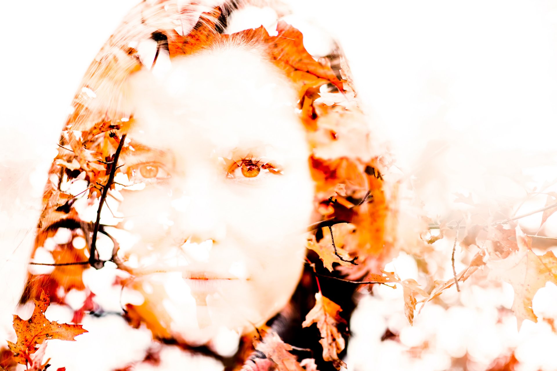 Portret dziewczyny z jesiennymi liśćmi