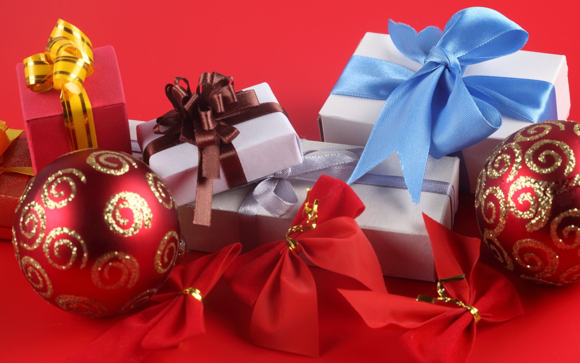 Piękne pudełka z kokardkami w bombkach noworocznych
