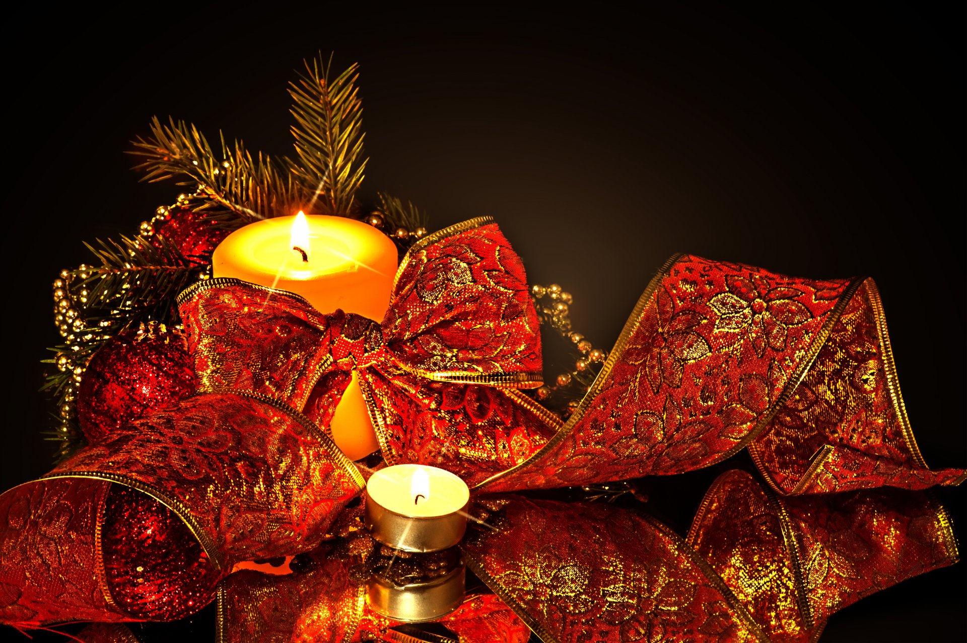 Świece noworoczne w czerwonych wstążkowych kokardkach
