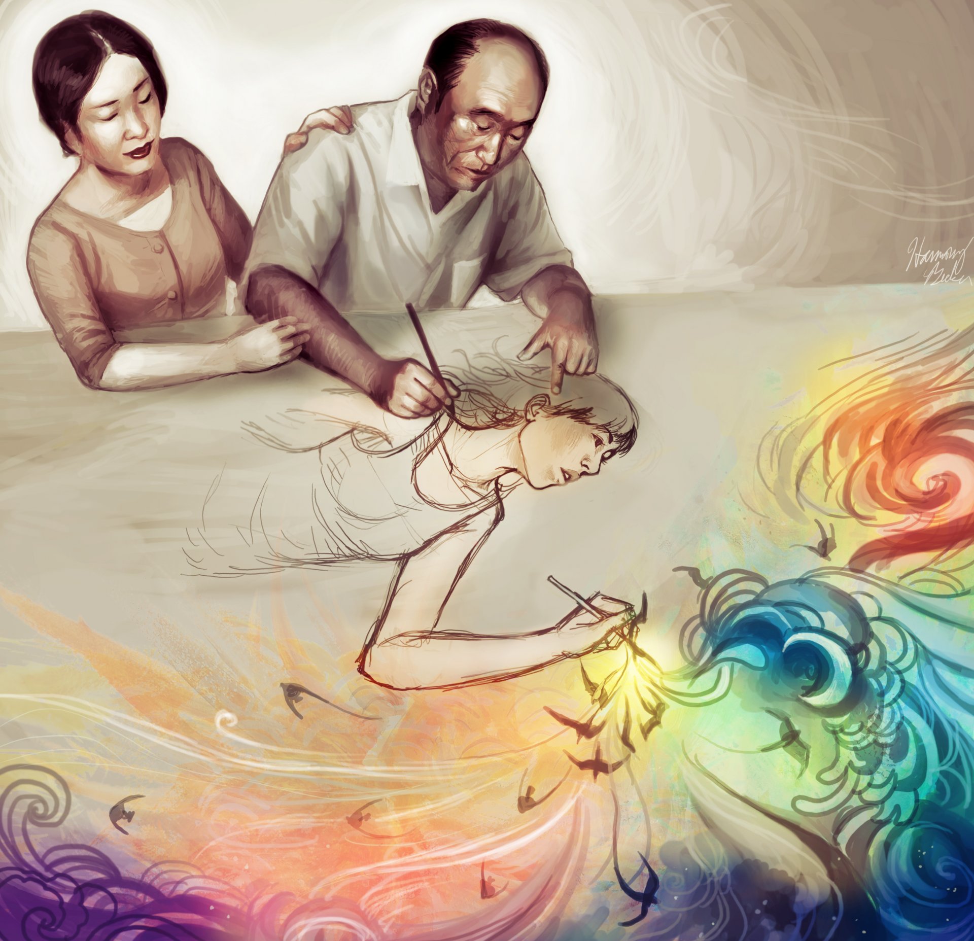 Obraz, w którym mężczyzna i kobieta malują obraz