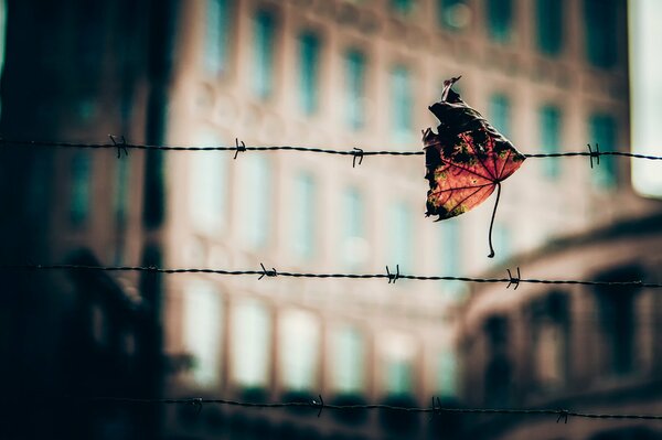 Liść zaczepiony o Drut kolczasty