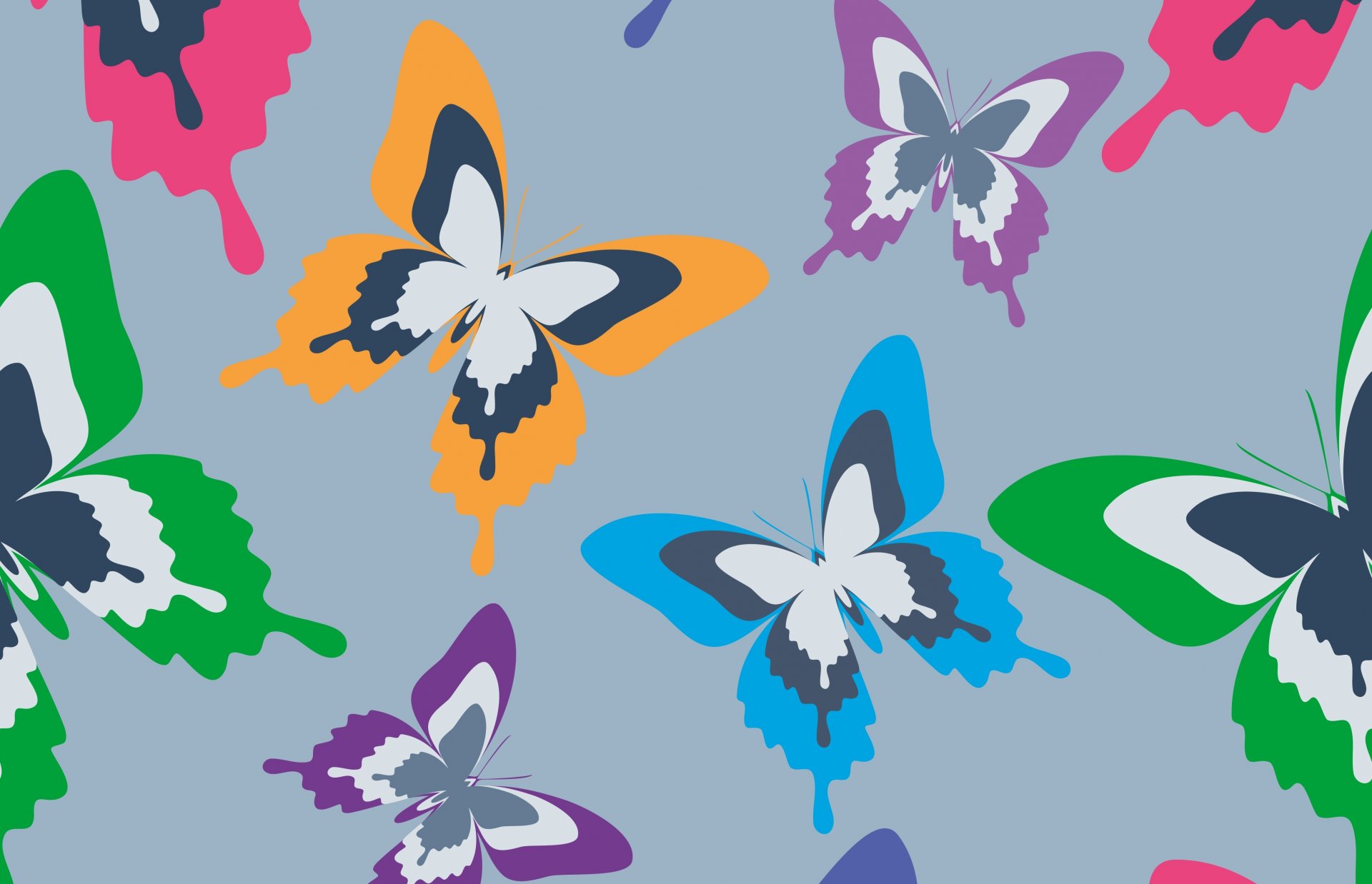 Kolorowe motyle na szarym tle