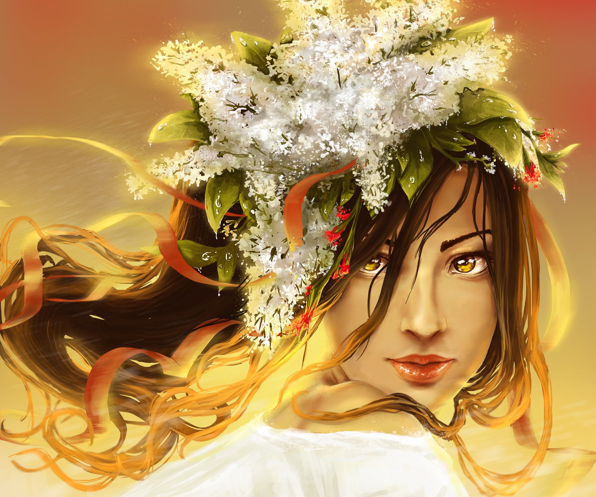 Obraz dziewczyny z wieńcem bzu na głowie