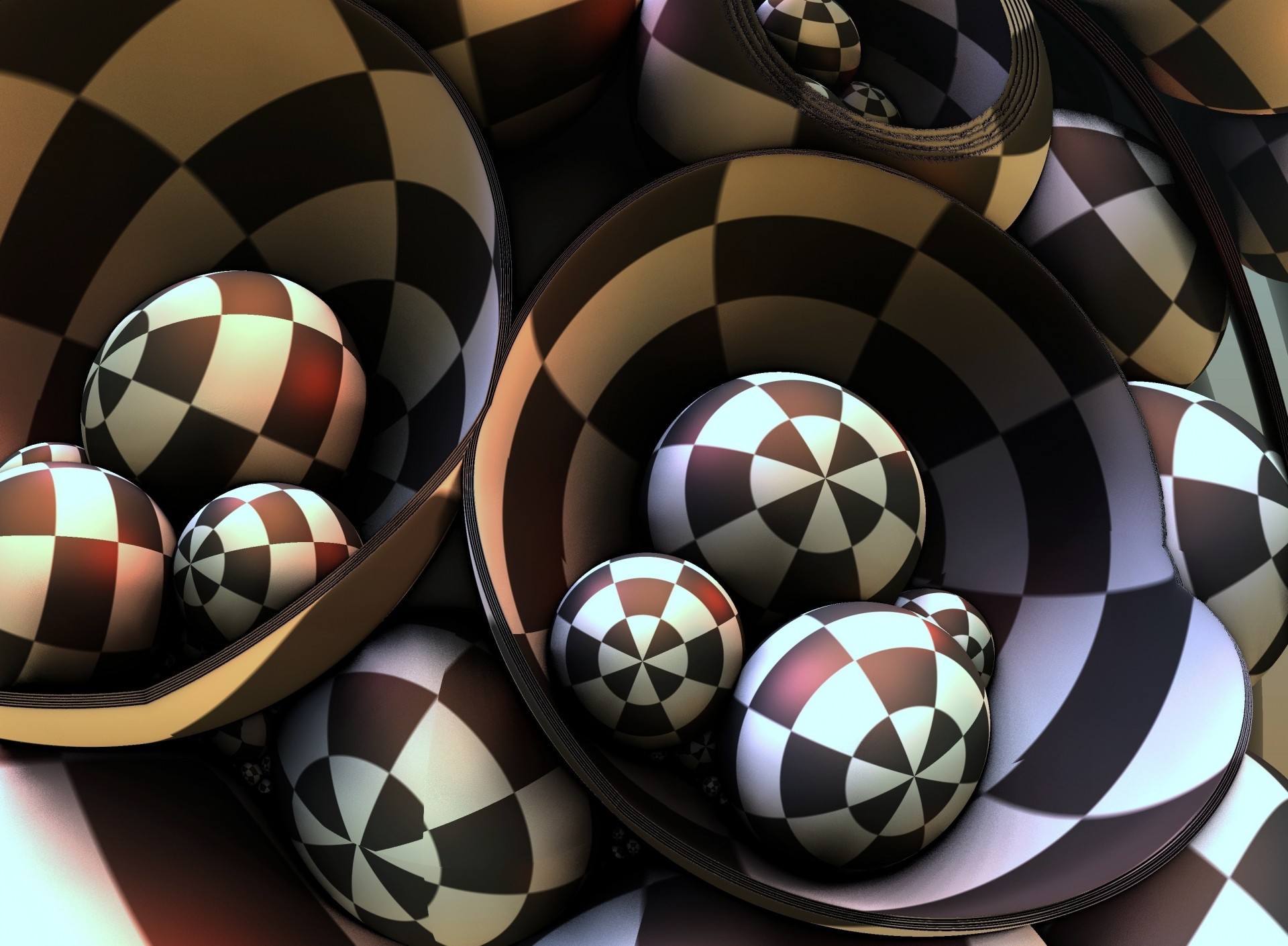 Kule wolumetryczne z wzorem szachownicy w pojemnikach