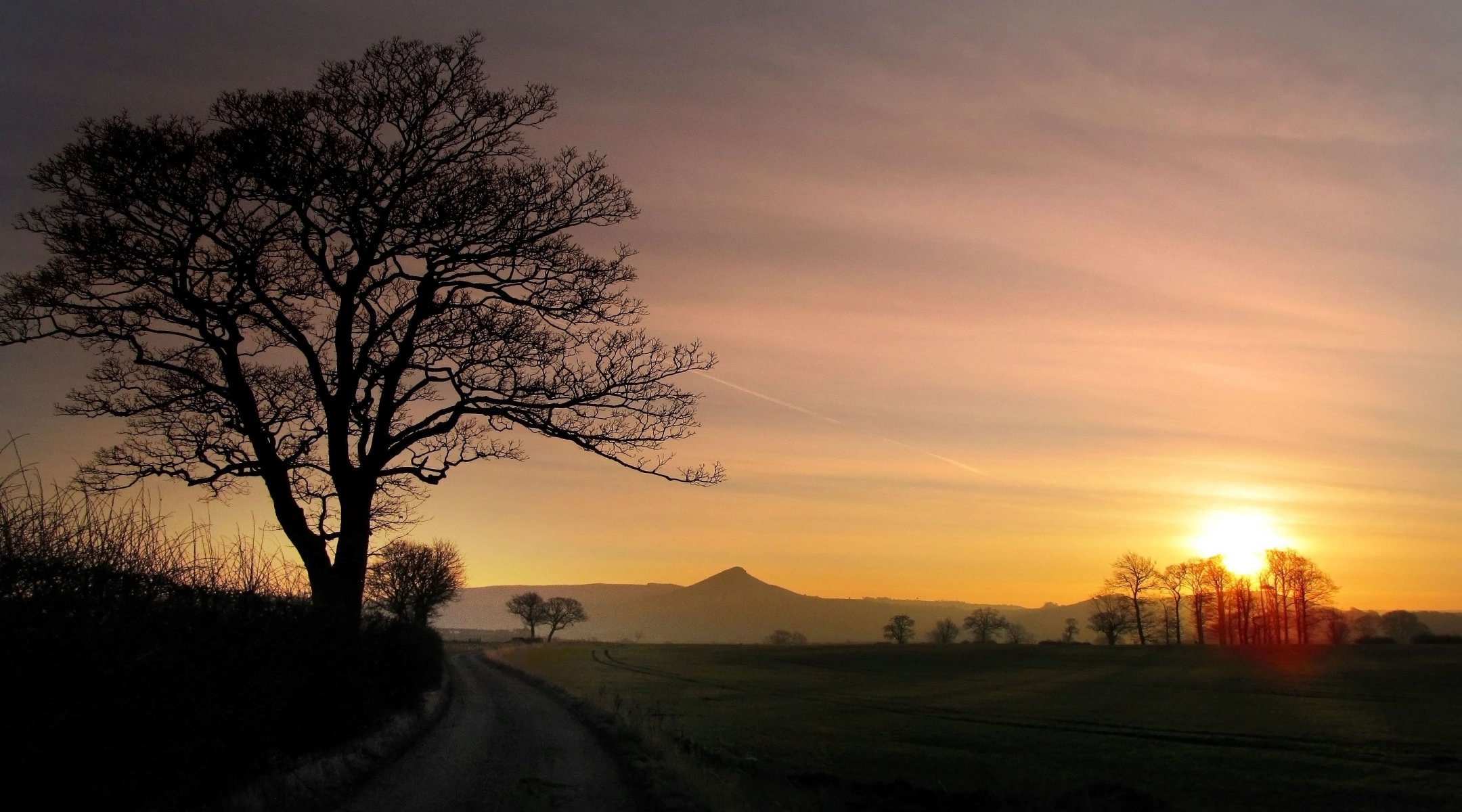 Krajobraz z drzewami i trawą. słońce przeczesuje gałęzieKrajobraz z drzewami i trawą. Słońce przeczesuje gałęzie