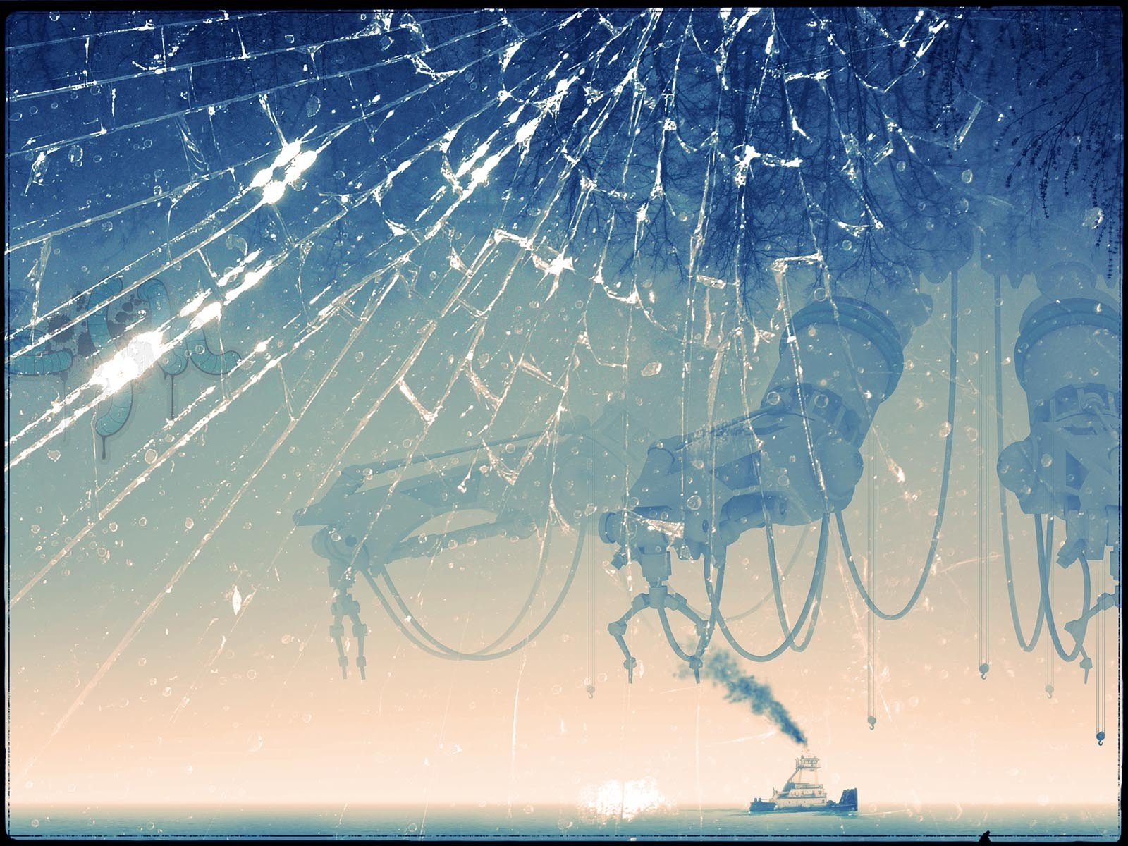 Gąsienica w makro i jej włosy. Odbicie na szkle