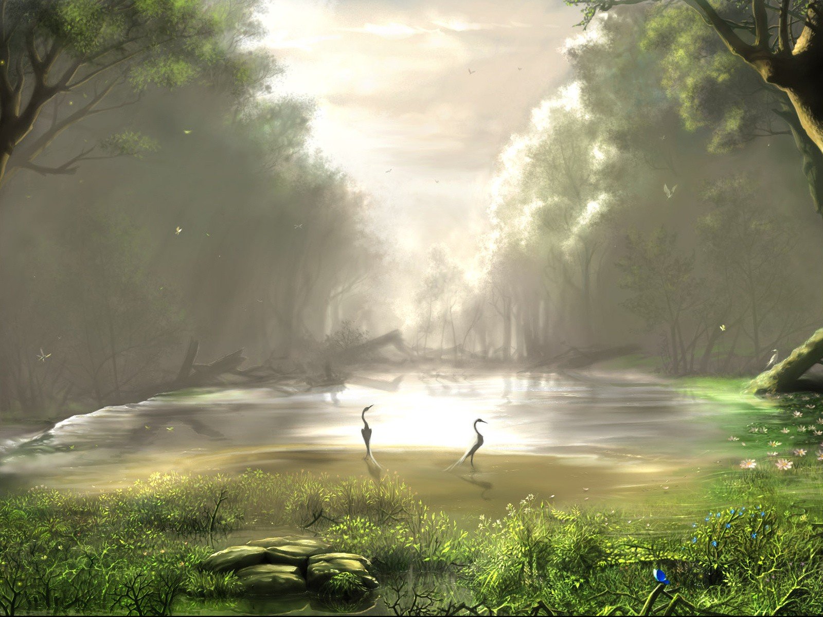 Rysunek Zatoki plażowej z palmami i formacjami kamienistymi