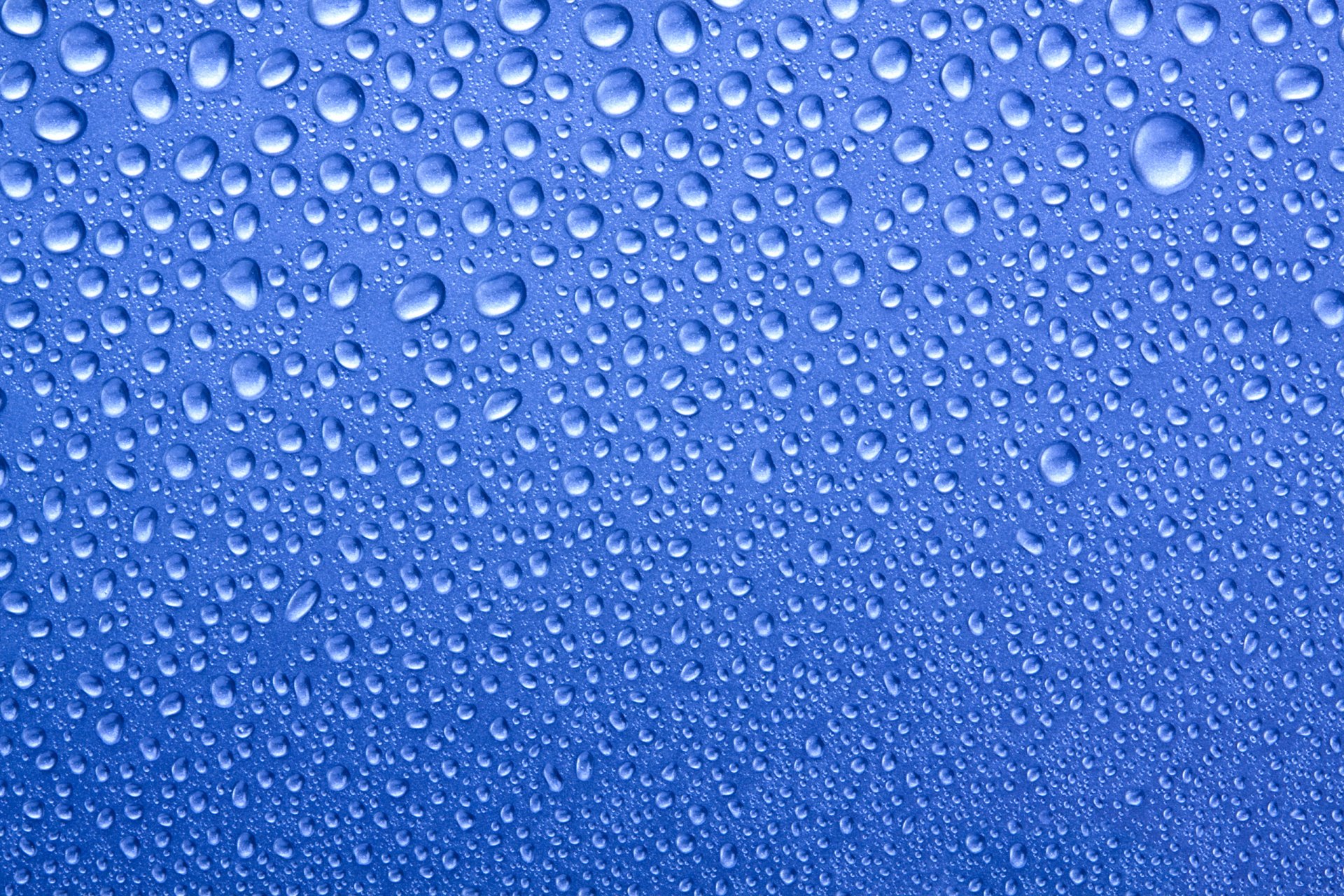 Minimalizm na turkusowym tle, z kroplami wody i śladami stóp na niebieskiej powierzchni