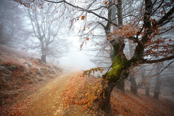 Opady śniegu na jeziorze z zaśnieżonymi drzewami