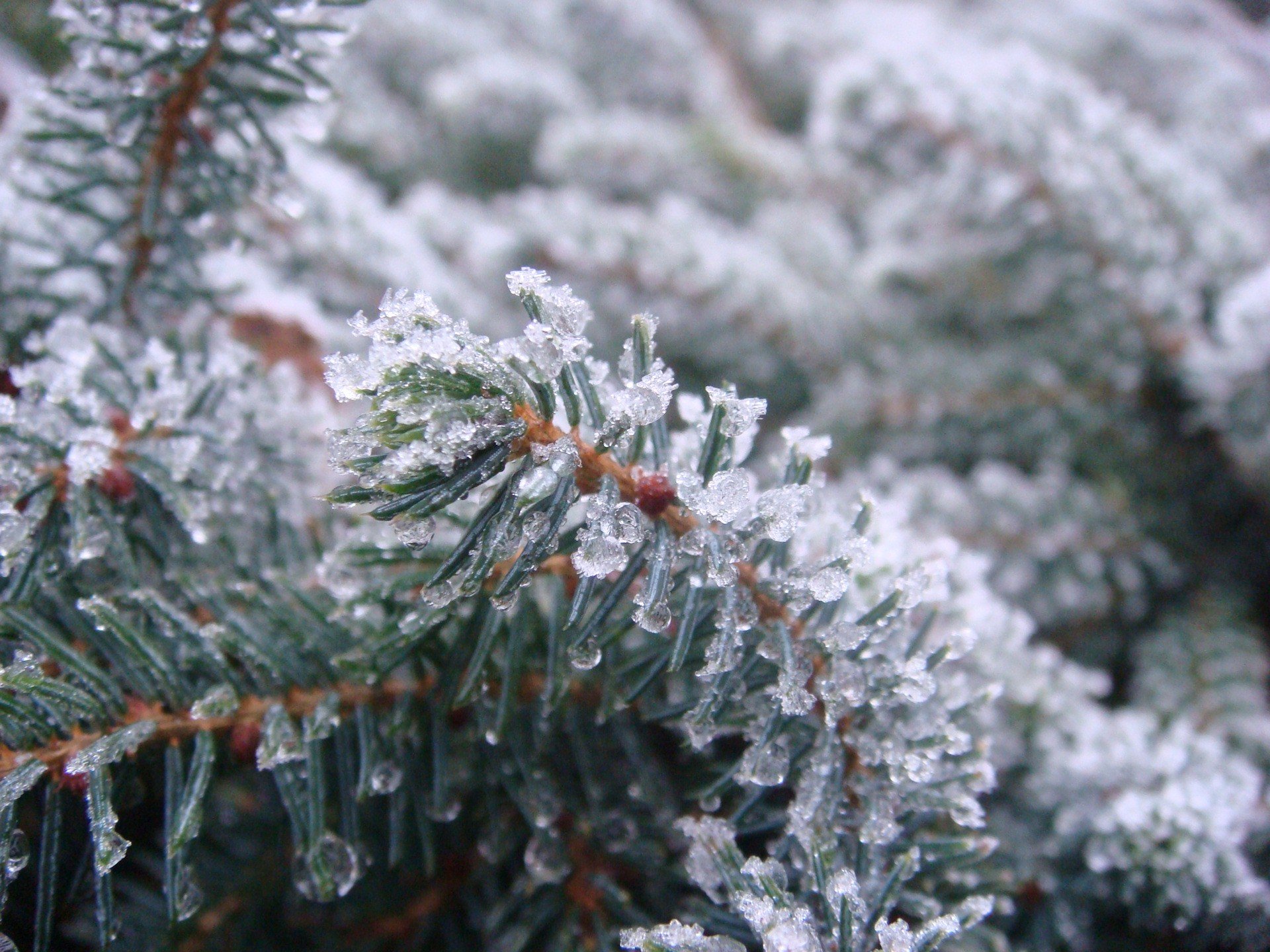 Igły świerkowe pokryte lodem