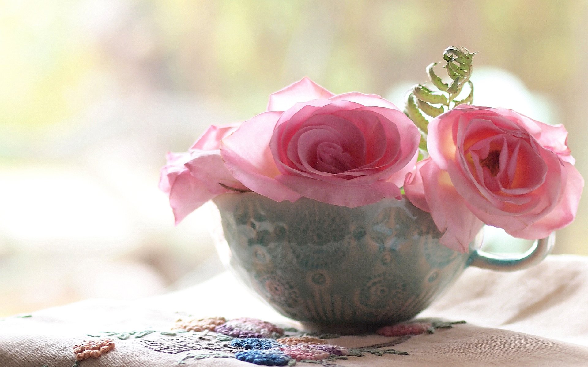 Kompozycja różowy kwiat, Książka i kubek herbaty
