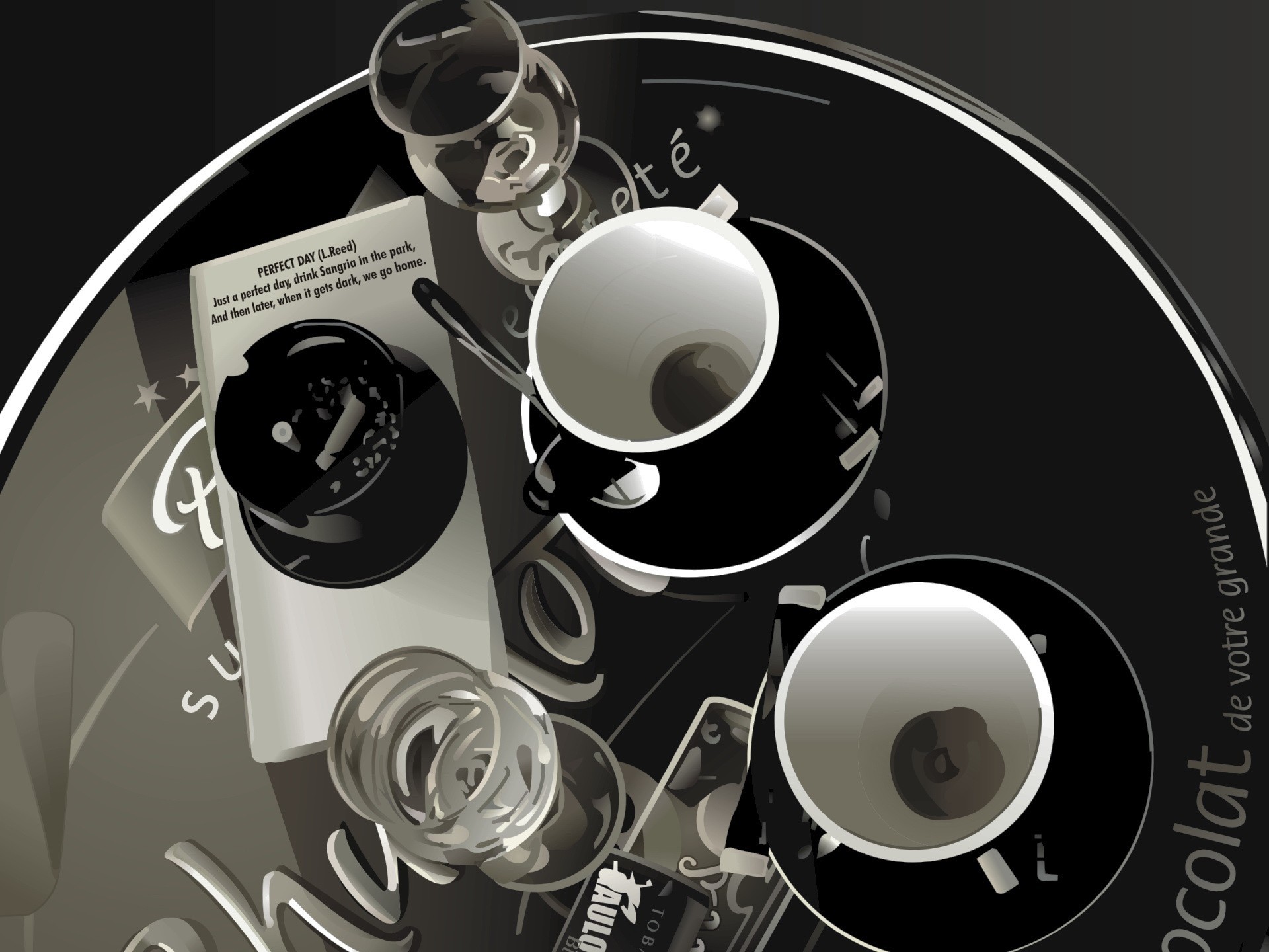 Kubki, szklanki i popielniczka stoją na stole