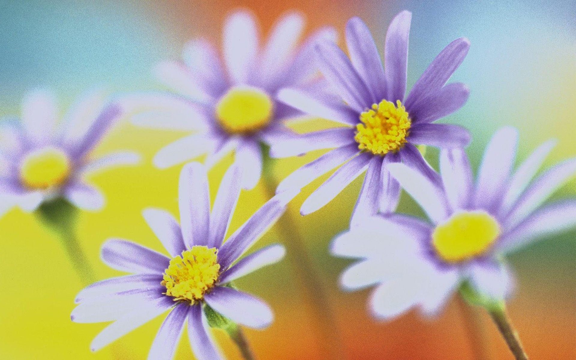 Kwiaty z różowymi płatkami na tle białych i niebieskich kwiatówKwiaty z różowymi płatkami na tle białych i niebieskich kwiatów