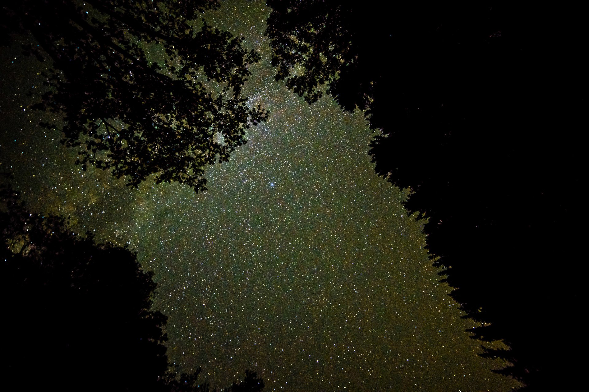 Nocne niebo z gwiazdami w lesie