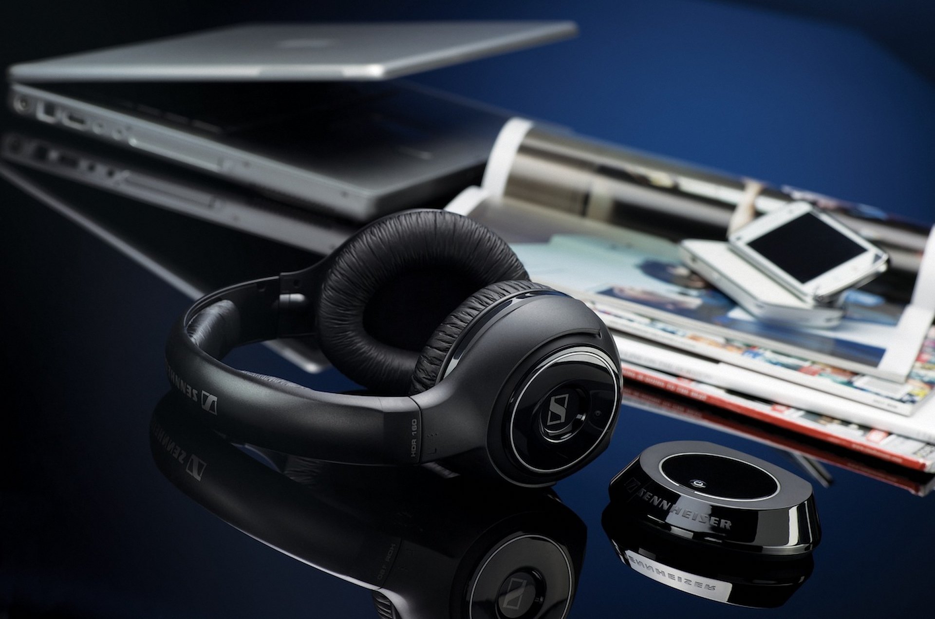 Laptop ze słuchawkami na stole z obrazem na ekranie kubka