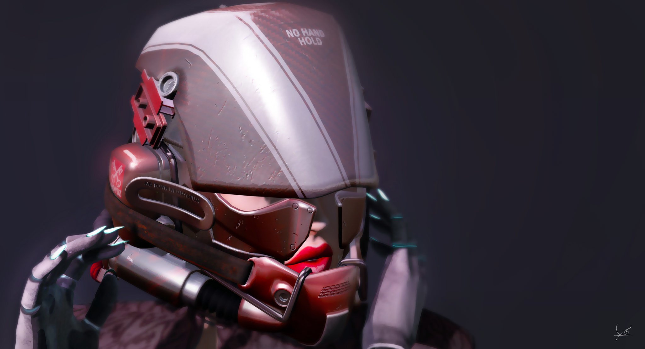 Futurystyczny wizerunek dziewczyny w kasku ze słuchawkami