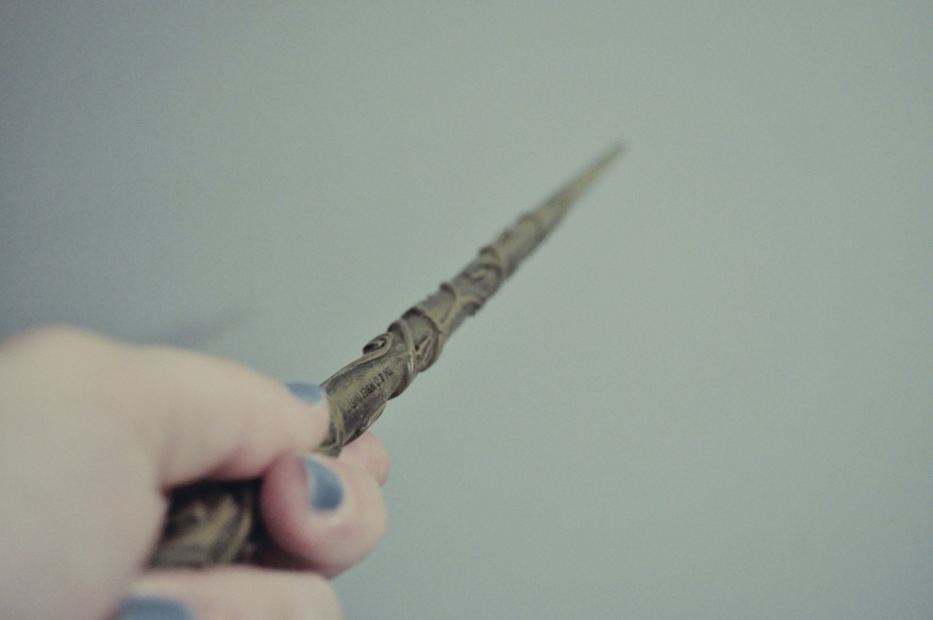 Pędzel Damski z Niebieskim manicure trzyma magiczną różdżkę