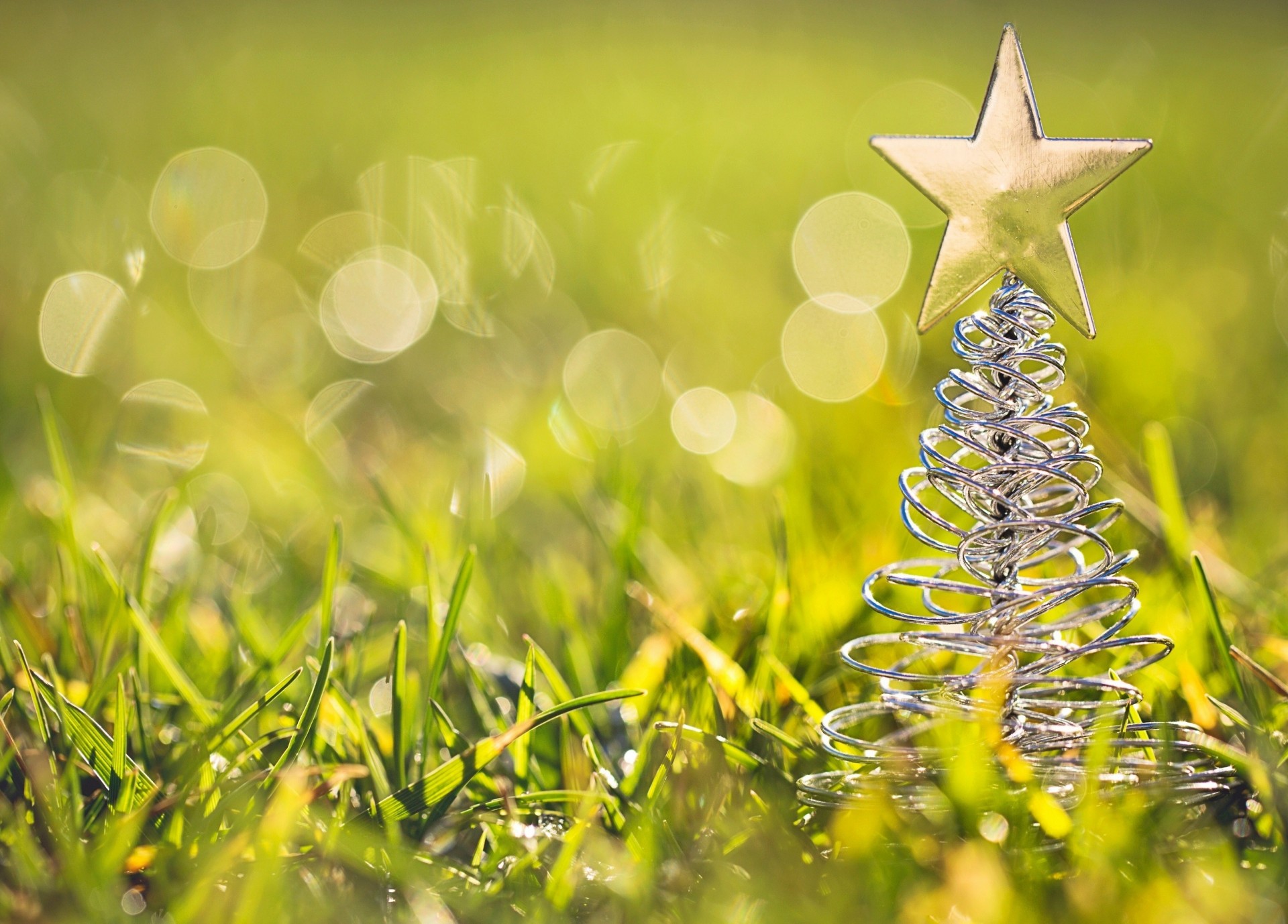 Choinka z gwiazdą w śnieżnobiałych płatkach śniegu