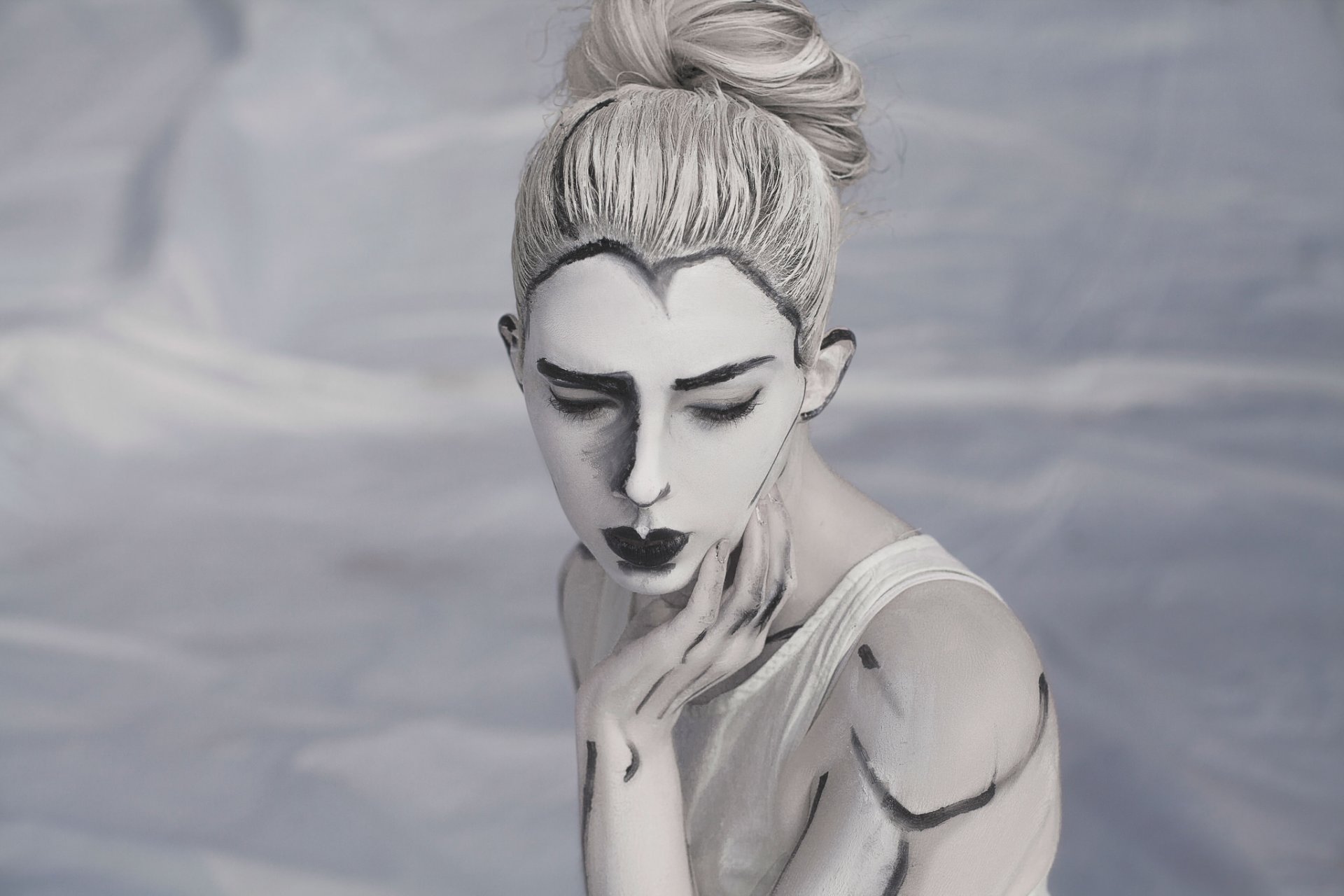 Niezwykły makijaż na dziewczynie w kapeluszu