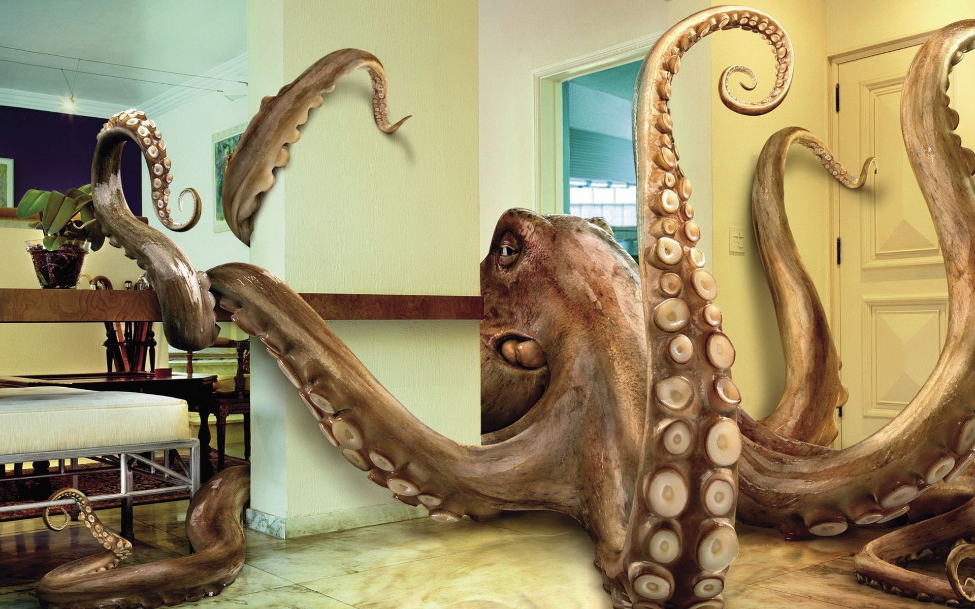 Ogromna ośmiornica na kafelku w mieszkaniu