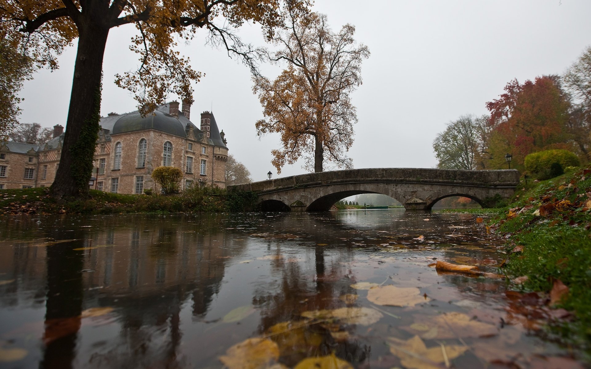 Kamienny most na stawie w angielskim dworku