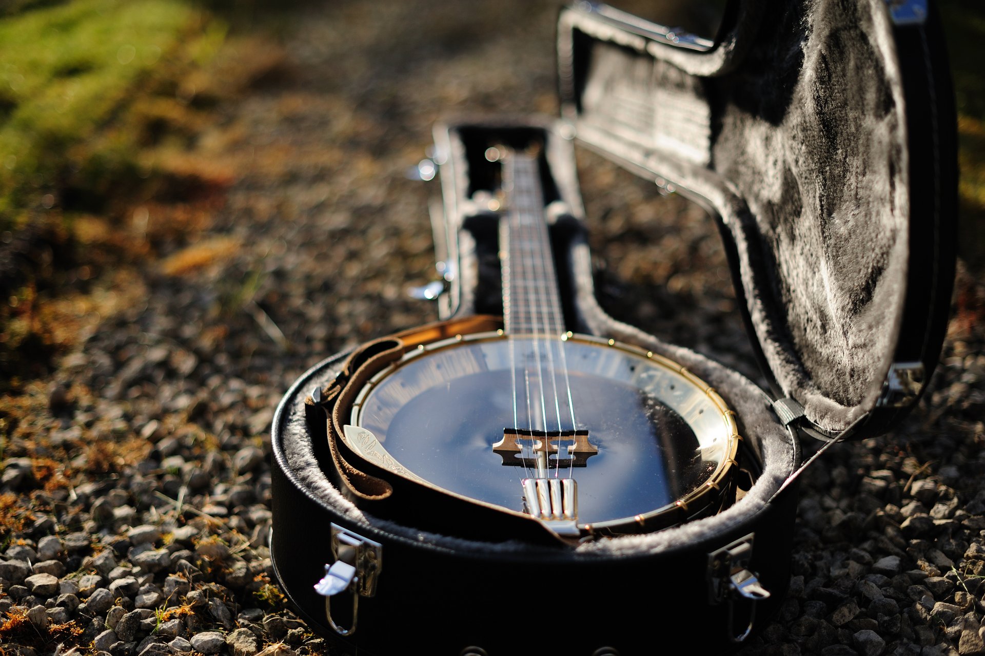 Banjo leży w pokrowcu na drodze