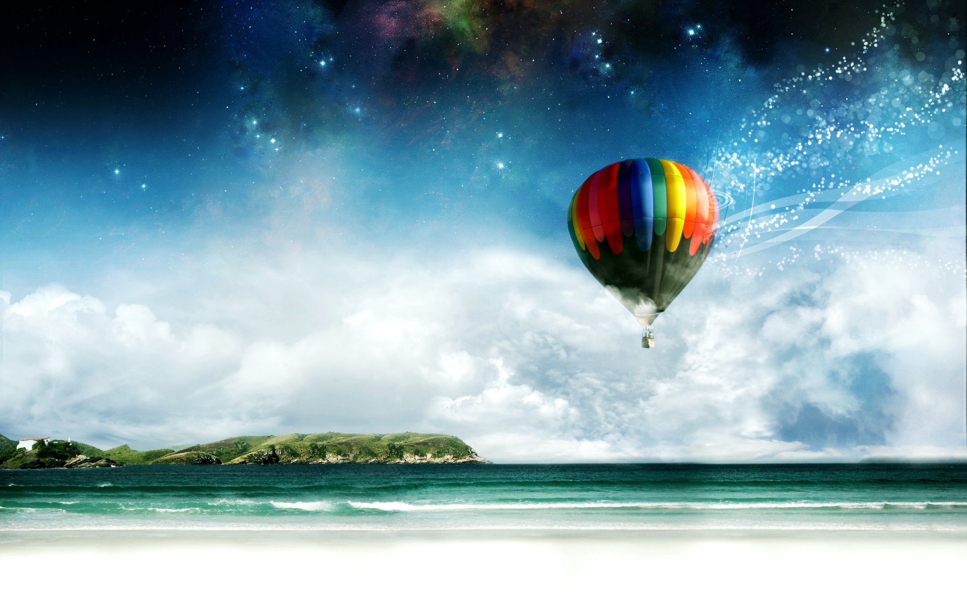 Na nocnym niebie nad oceanem ląduje na lądowisku lotniskowca helikopterNa nocnym niebie nad oceanem ląduje na lądowisku lotniskowca helikopter