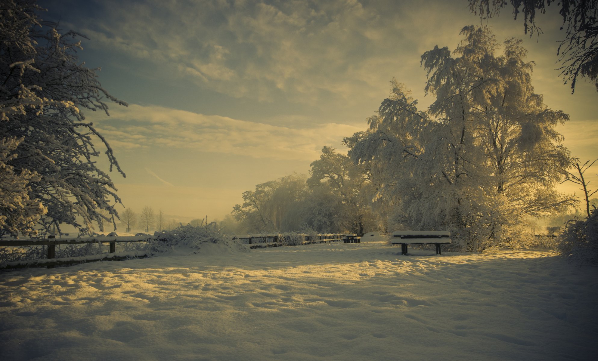 Natura zimą w parku w śniegu