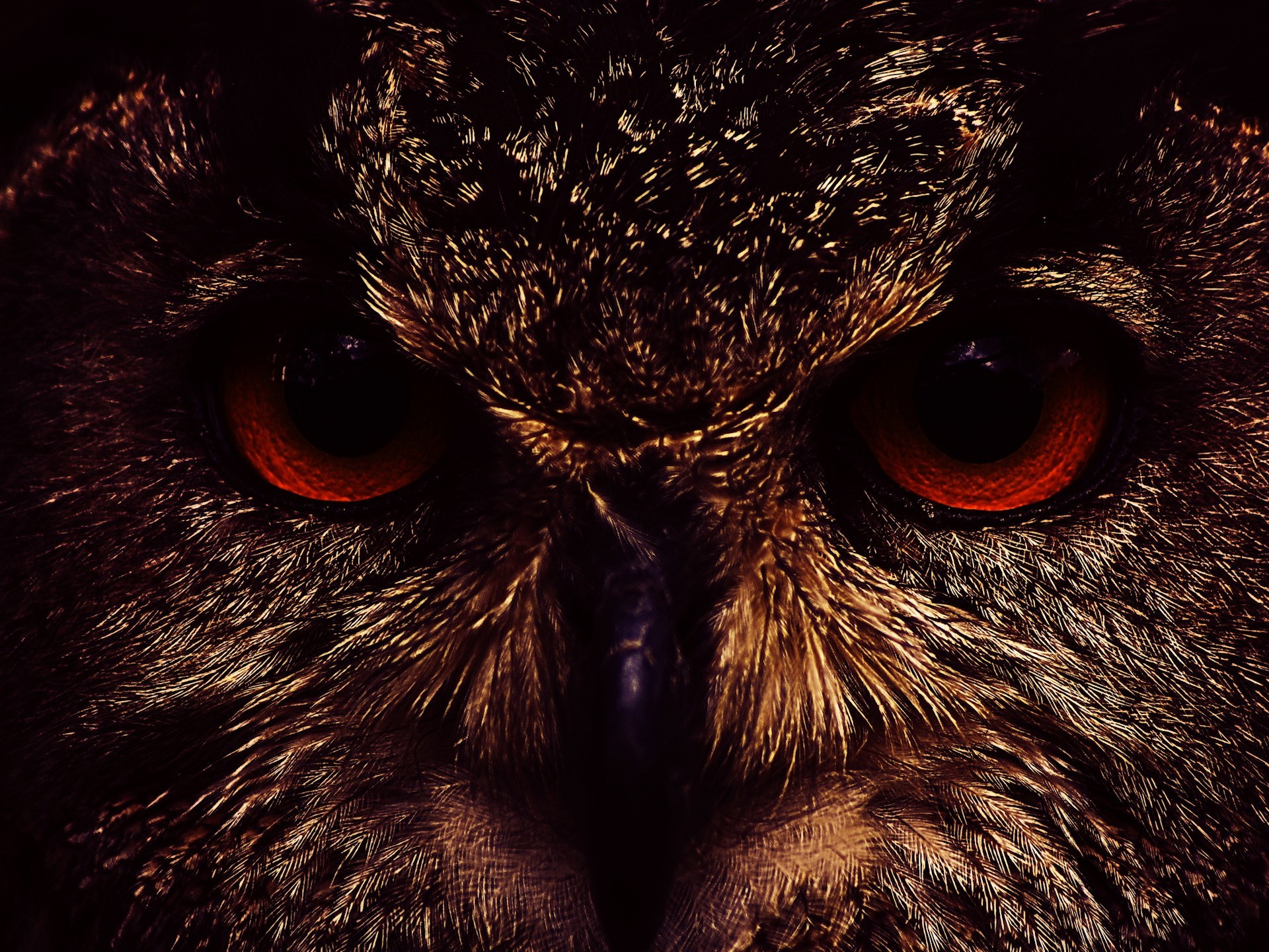 Czerwone oczy sowy zbliżenie