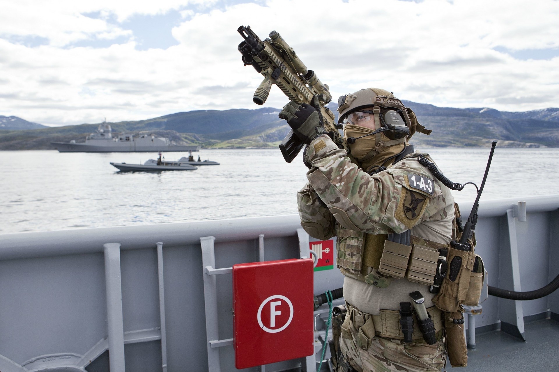 Żołnierz z bronią na tle gór