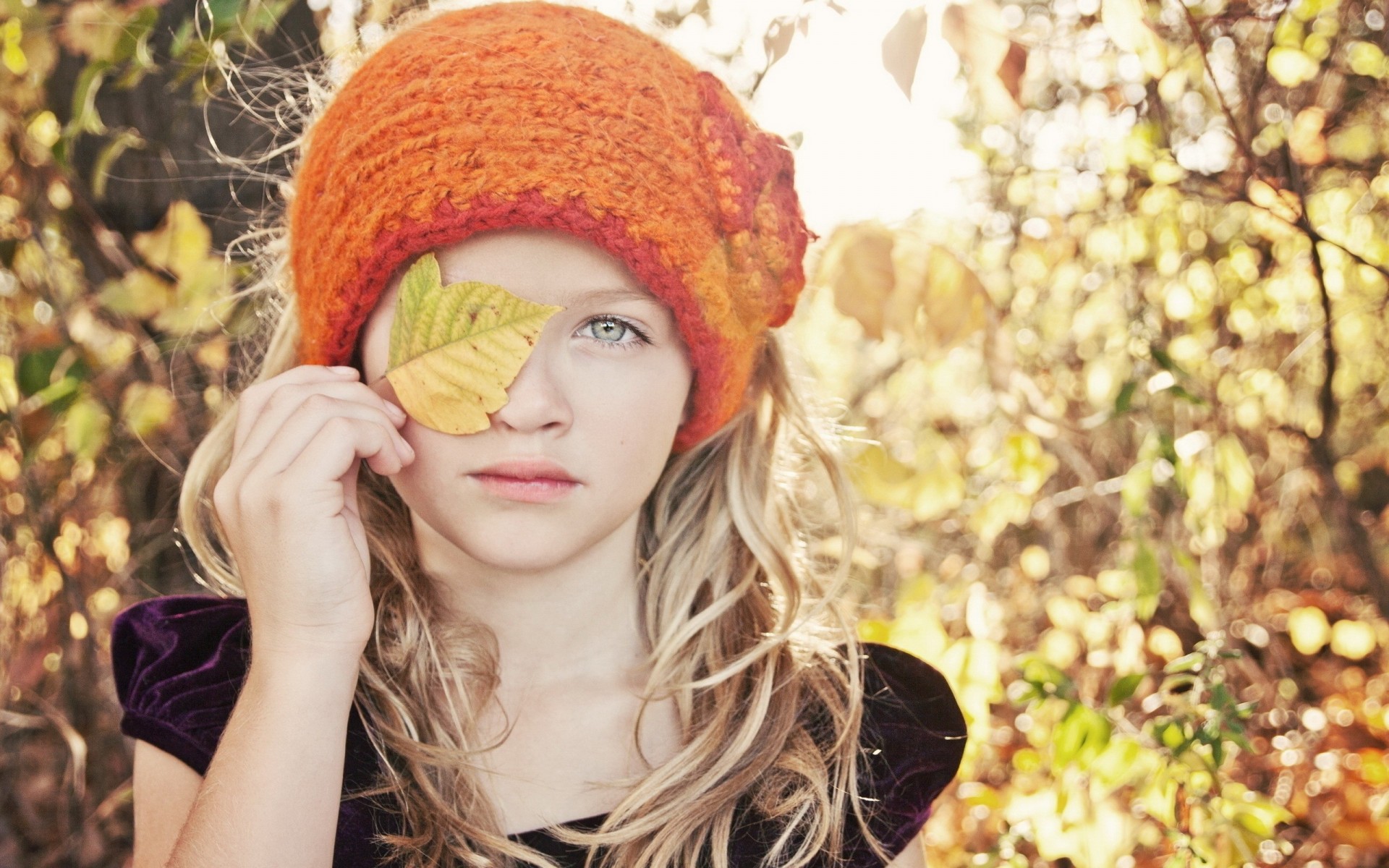 Dziewczyna zakrywa jedno oko żółtą ulotką