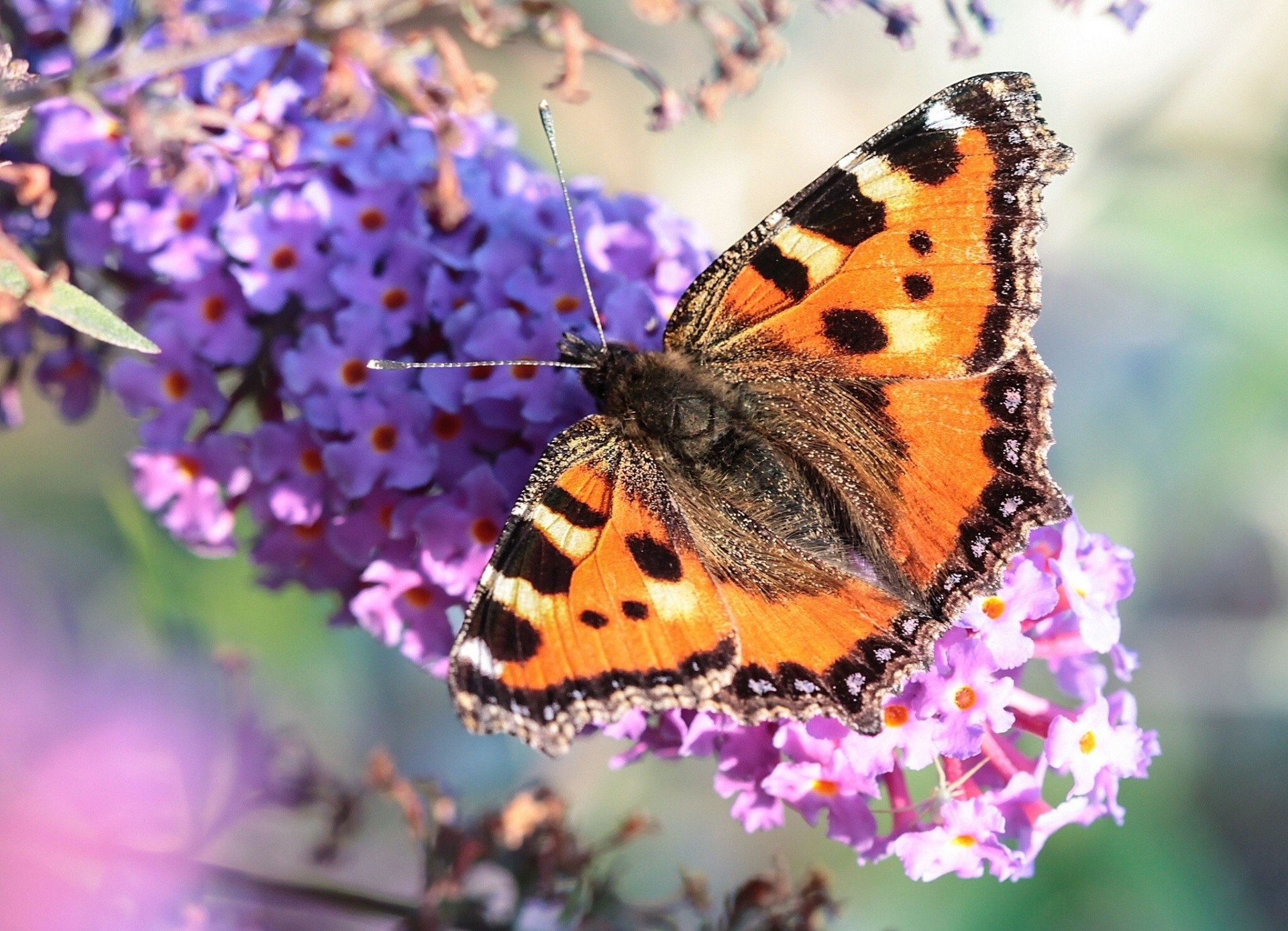 Motyl pokrzywka na gałęzi bzu